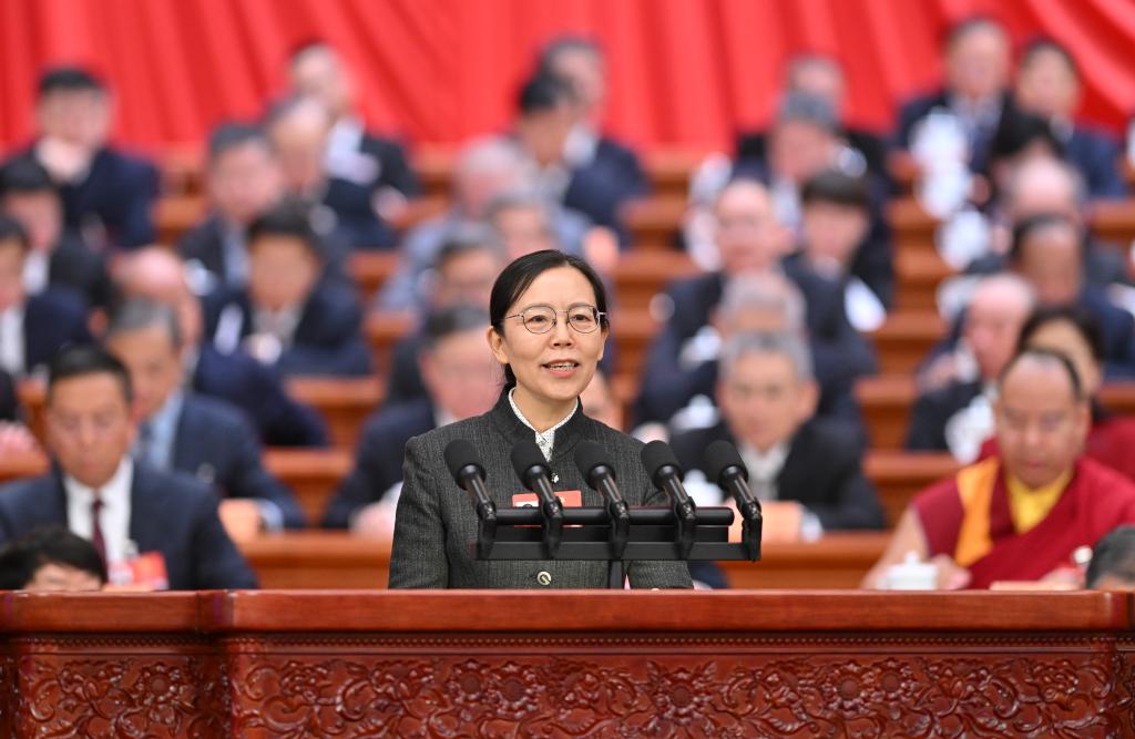 3月8日,全國政協(xié)十四屆四次會(huì)議在北京人民大會(huì)堂舉行第三次全體會(huì)議。這是陳星鶯委員代表民革中央作題為《“臺(tái)獨(dú)”必是絕路 統(tǒng)一方為正道》的發(fā)言。新華社記者 岳月偉 攝