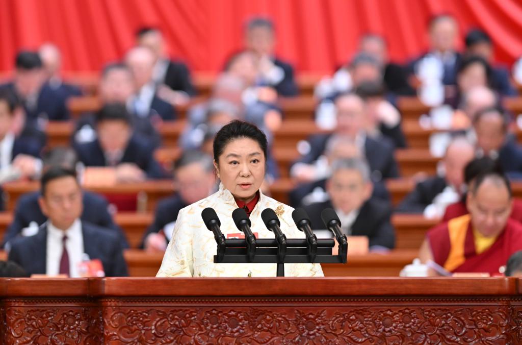 3月8日,全國政協(xié)十四屆四次會(huì)議在北京人民大會(huì)堂舉行第三次全體會(huì)議。這是田沁鑫委員作題為《秉承文藝初心 堅(jiān)守人民立場(chǎng)》的發(fā)言。新華社記者 張領(lǐng) 攝