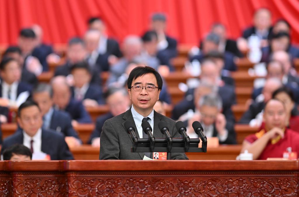 3月8日,全國政協(xié)十四屆四次會(huì)議在北京人民大會(huì)堂舉行第三次全體會(huì)議。這是楊明杰委員作題為《穩(wěn)步推進(jìn)落實(shí)四大全球倡議 推動(dòng)構(gòu)建人類命運(yùn)共同體》的發(fā)言。新華社記者 岳月偉 攝