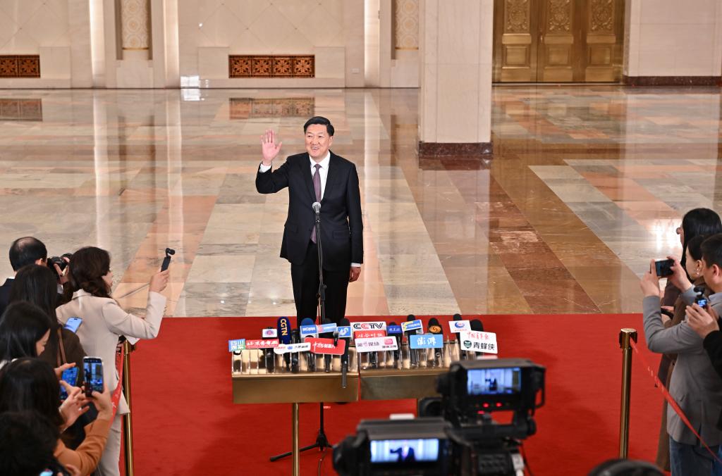 3月9日,第十四屆全國人民代表大會第四次會議第二場“部長通道”集中采訪活動在北京人民大會堂舉行。這是農業(yè)農村部部長韓俊接受媒體采訪。新華社記者 李鑫 攝