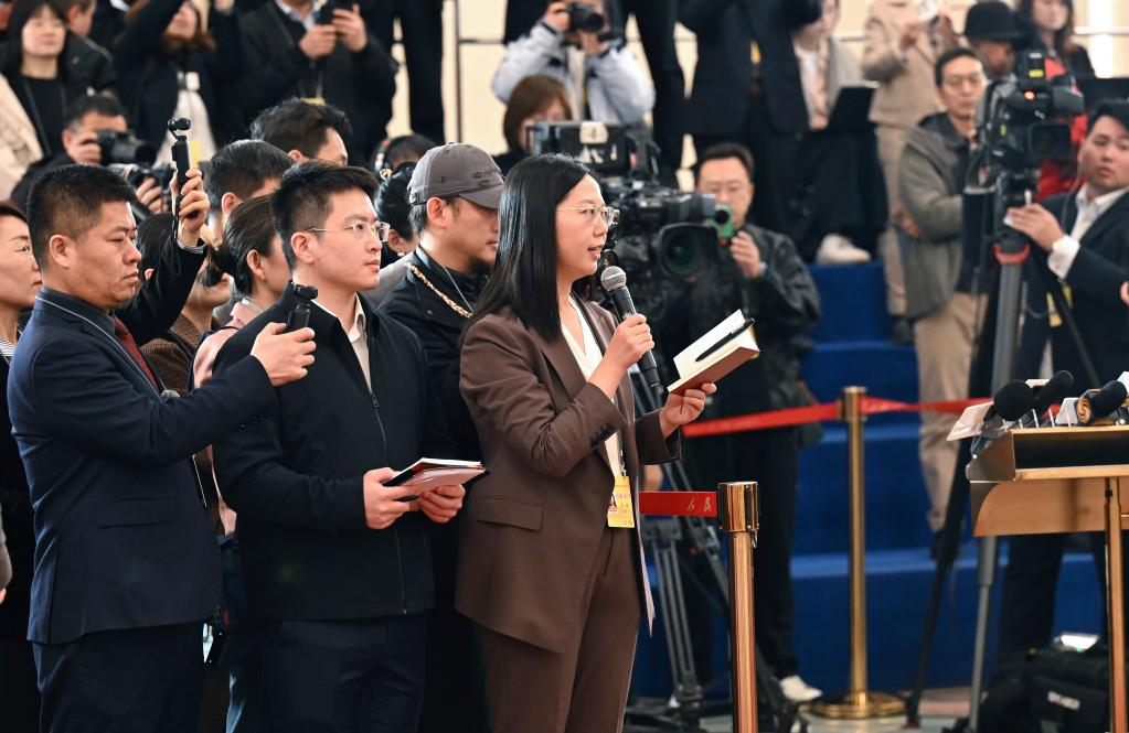 3月9日,第十四屆全國人民代表大會第四次會議第二場“部長通道”集中采訪活動在北京人民大會堂舉行。這是記者在現(xiàn)場提問。新華社記者 蔡湘鑫 攝