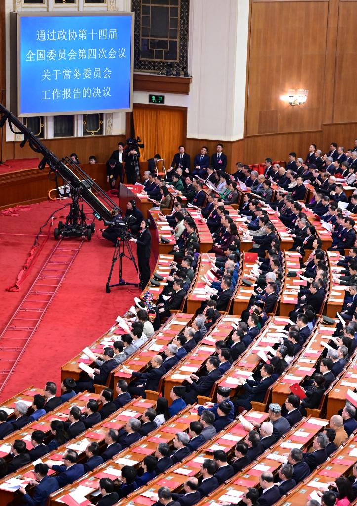 3月11日,全國政協十四屆四次會議在北京人民大會堂舉行閉幕會。新華社記者 王曦 攝