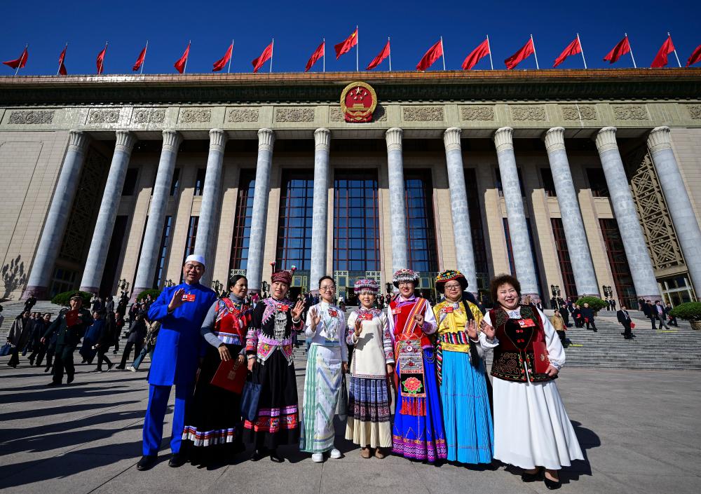 3月11日,全國政協十四屆四次會議在北京人民大會堂舉行閉幕會。這是閉幕會后,委員們在人民大會堂前合影。新華社記者 陳曄華 攝