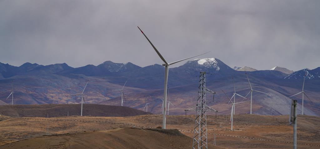 位于西藏日喀則市薩迦縣的風(fēng)力發(fā)電機組。新華社記者 晉美多吉 攝